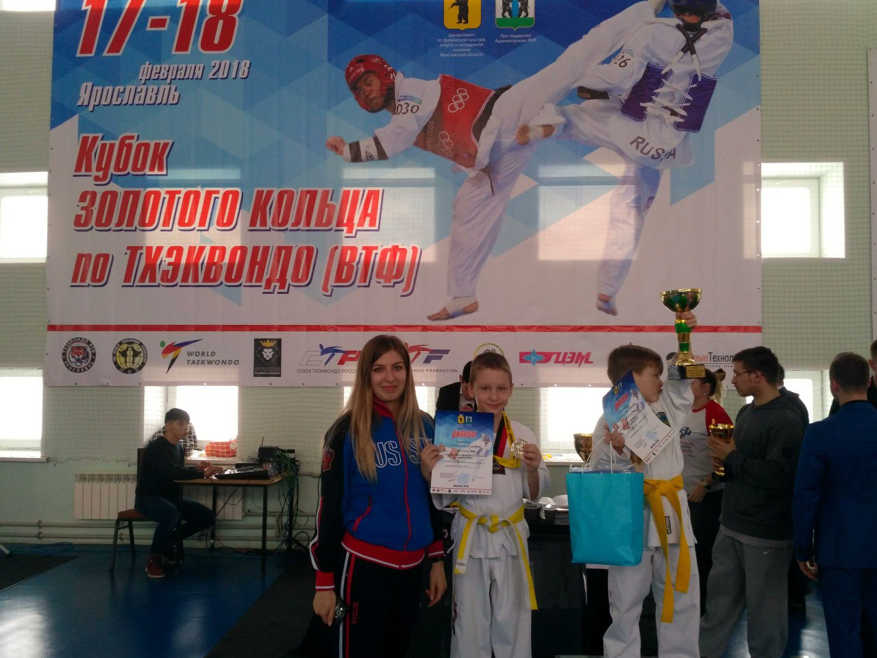 17-18 ф евраля 2018 года в г. Ярославль прошёл открытый кубок по тхэквондо «Кубок Золотого кольца». В соревнованиях приняли участие мальчики и девочки 2009-2010 г.р. и 2011 г.р.
