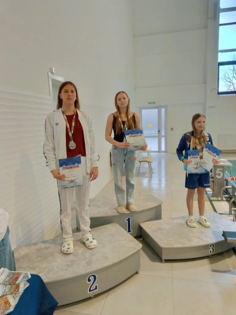 3 место?- Маслова Василиса - 200 м к/пл., Шрам Арсений- 100 м в/с, Тишутин Артур - 200 м к/пл.