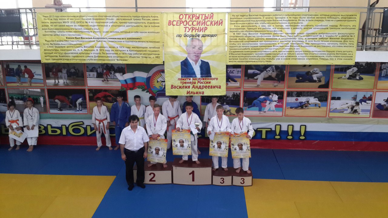 С 8 по 12 июня 2017г. в городе-курорте Анапа прошел открытый турнир среди городов-участников по дзюдо, посвященный памяти Заслуженного тренера России Василия Андреевича Ильина среди юношей и девушек 2003-2005г.г. рождения.
