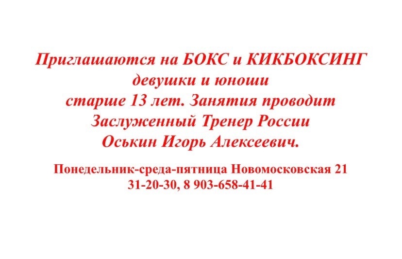 Ведётся набор девушек и юношей на отделения «бокса» и «кикбоксинга» в возрасте 12-13 лет.