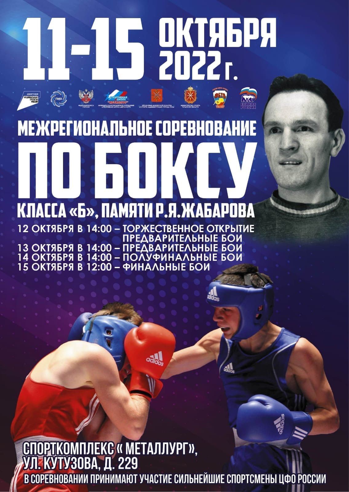 47 спортсменов МБУ СШОР «Восток» примут участие в Межрегиональных соревнованиях по боксу класса «Б», памяти Р.Я. Жабарова, которые пройдут с 11 по 15 октября 2022 года в Туле на базе спортивного комплекса Металлург.